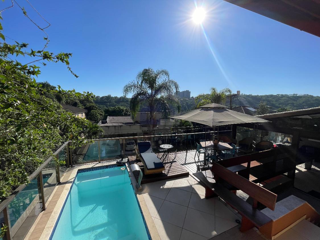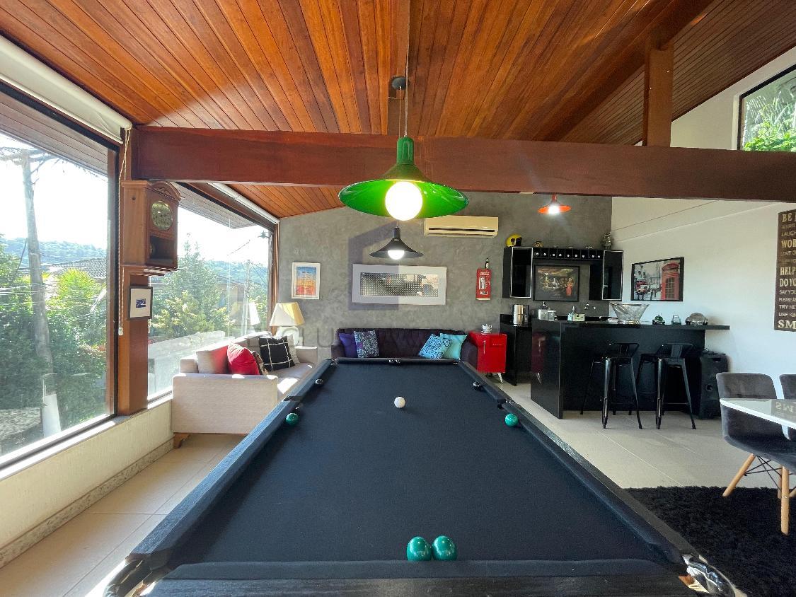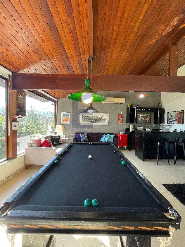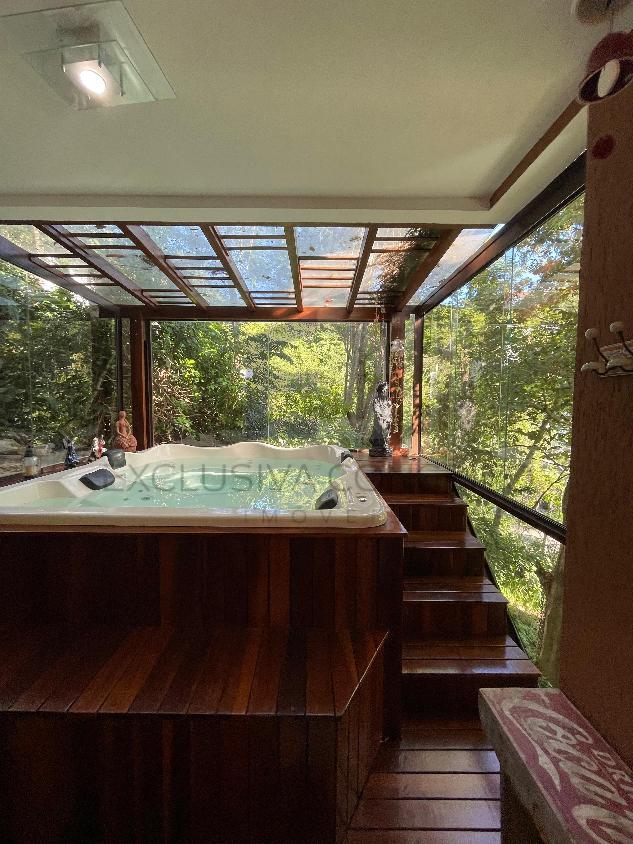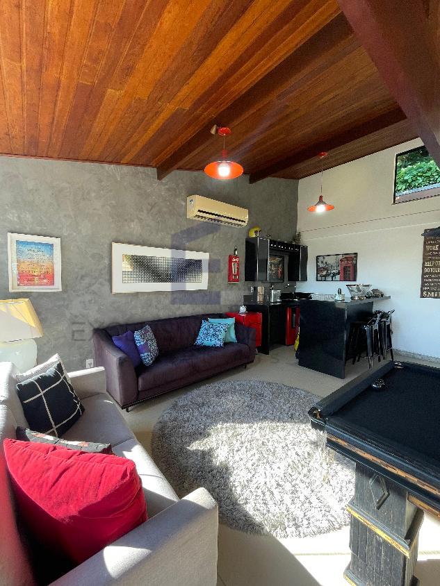 Ambientes de salas amplas: estar, jantar e de cinema. Área de lazer privativo exponencial com piscina, salão de jogos e uma Jacuzzi com capacidade para sete adultos.