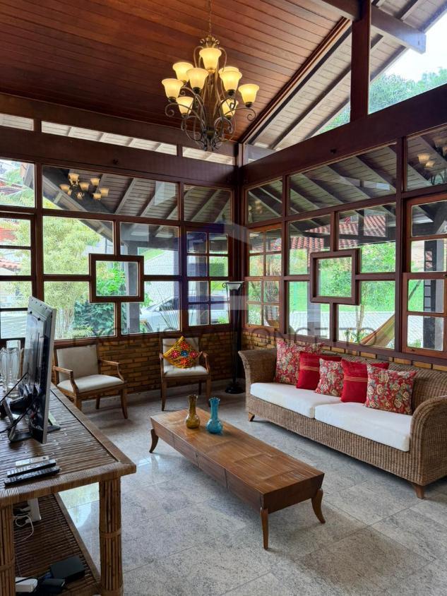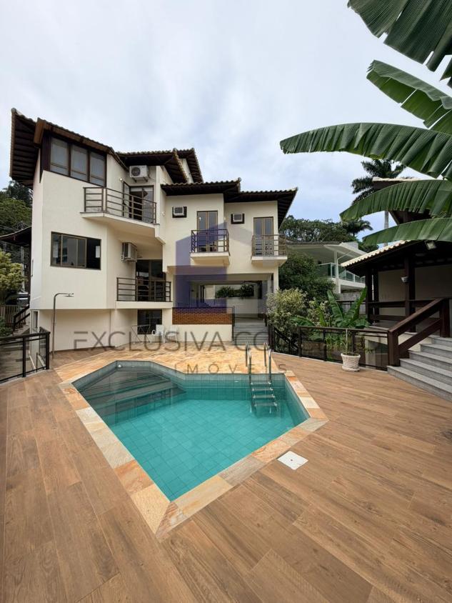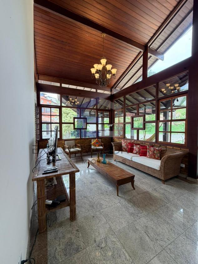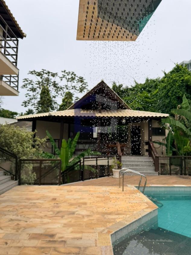 A área externa foi pensada para momentos de lazer e convivência, com piscina integrada à paisagem natural, espaço gourmet coberto com churrasqueira e banheiro de apoio. O imóvel dispõe ainda de sauna, ducha, árvores frutíferas, lavanderia independente, dependência completa e depósito.