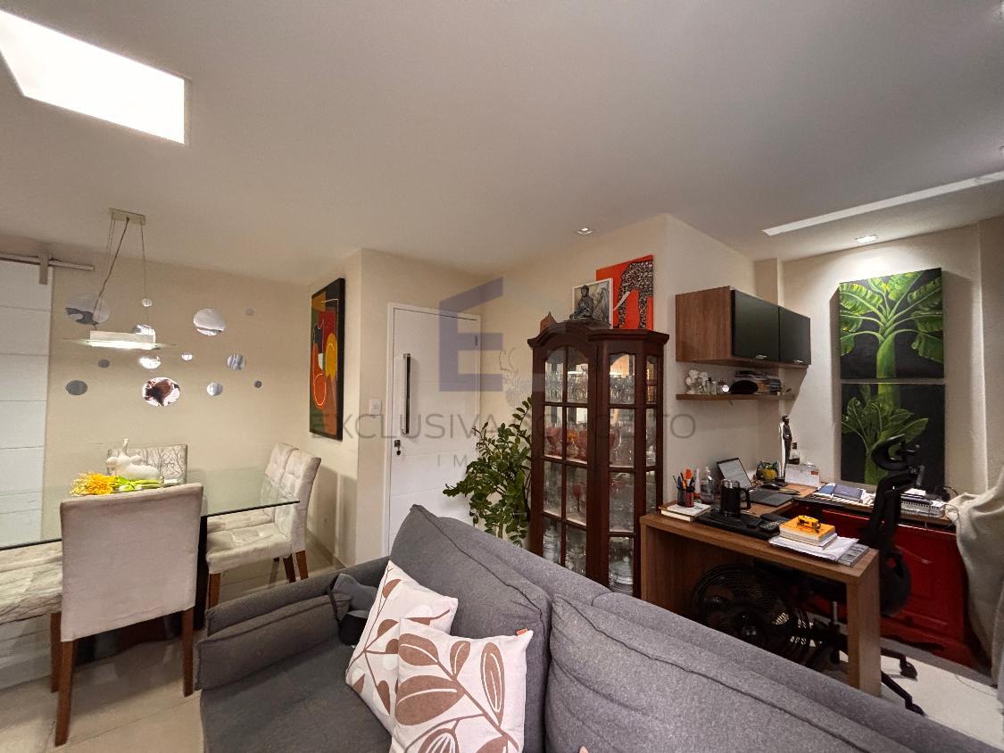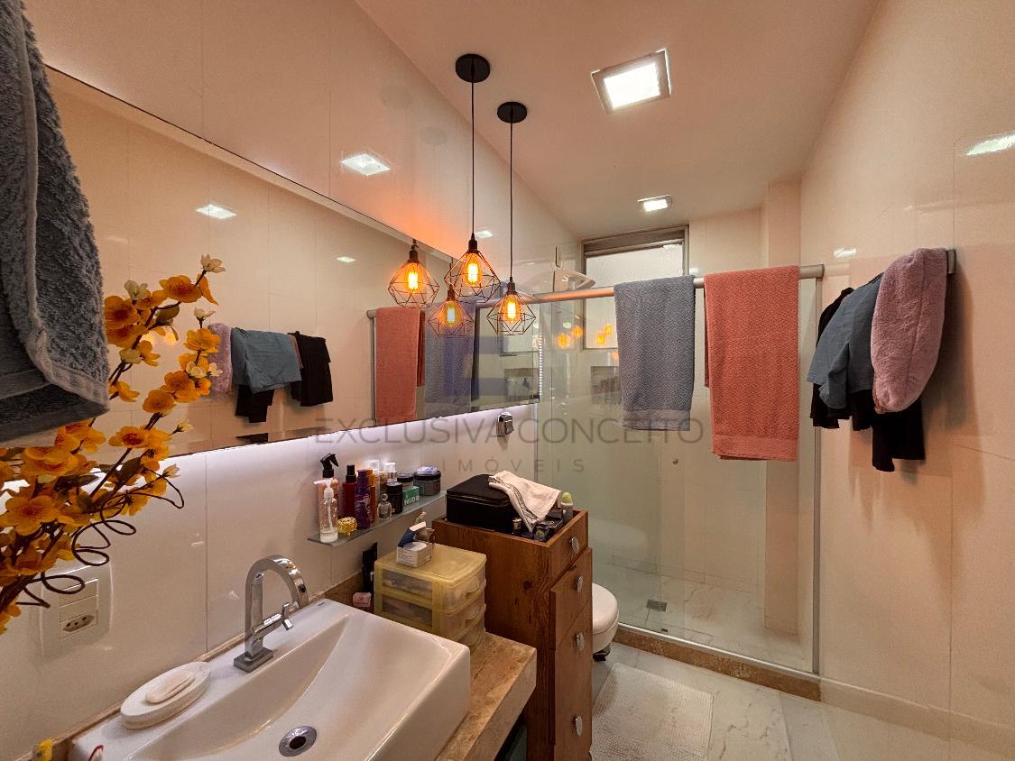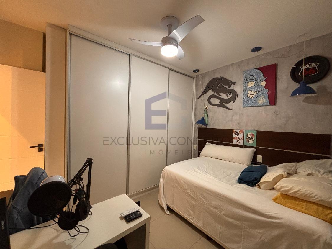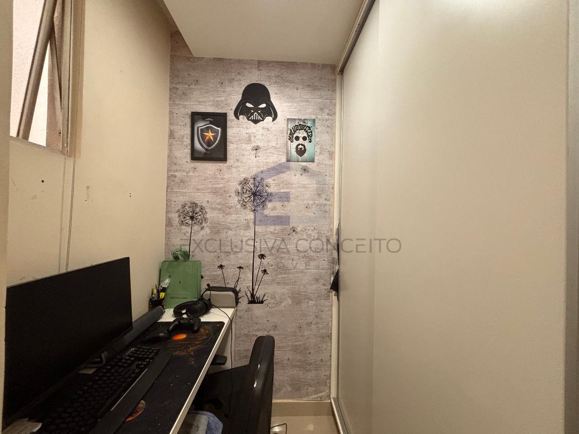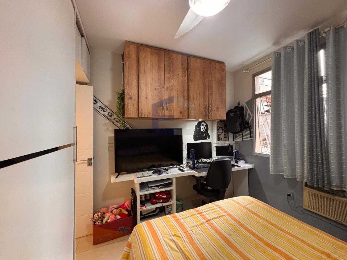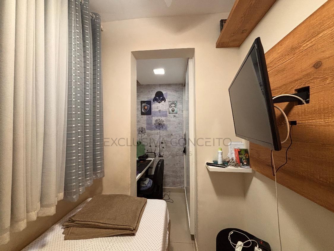 O apartamento possui 03 quartos, sendo 02 suítes. A dependência foi revertida em escritório (atualmente, apesar do tamanho mais reduzido, é utilizado como quarto e comporta uma cama tamanho solteiro e um roupeiro).