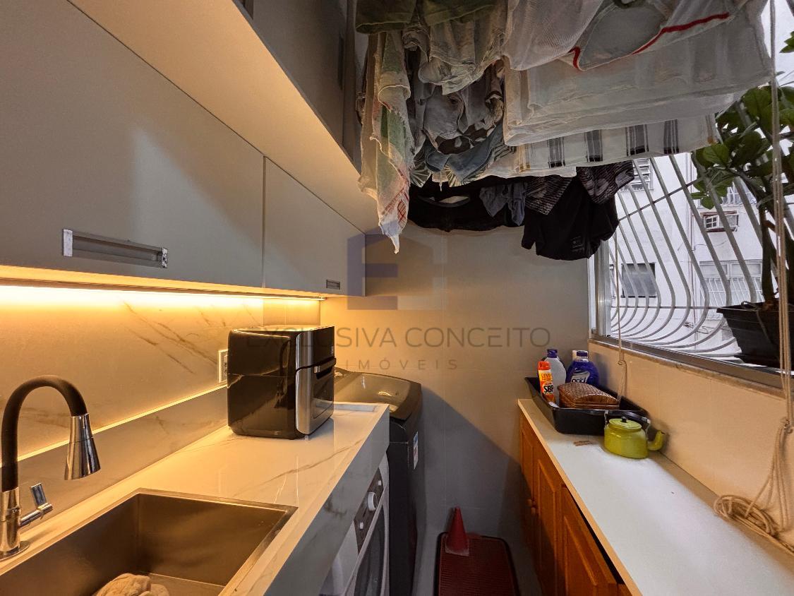 Sala em dois ambientes, cozinha super moderna e toda montada com armários planejados e área de serviço iluminada e ventilada também com armários planejados.