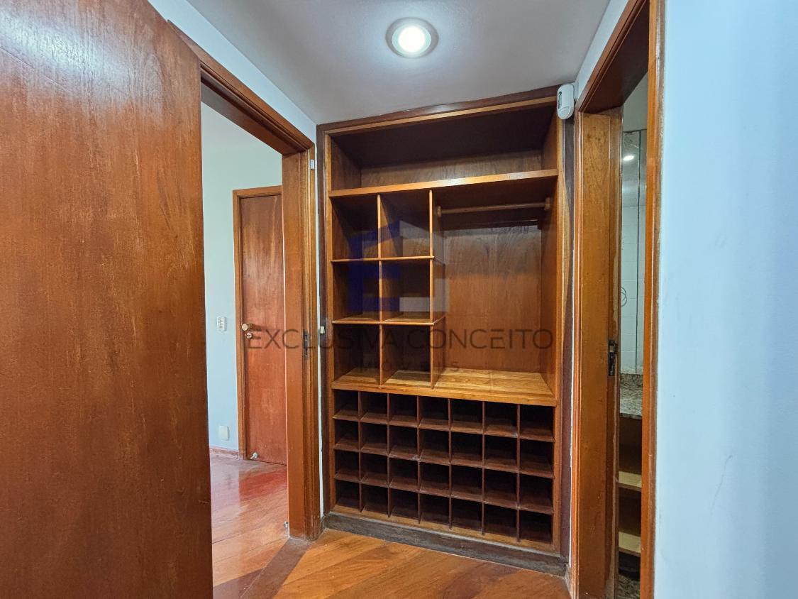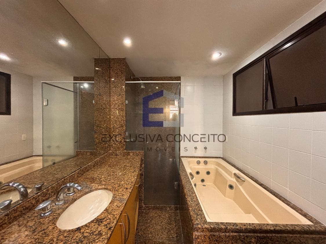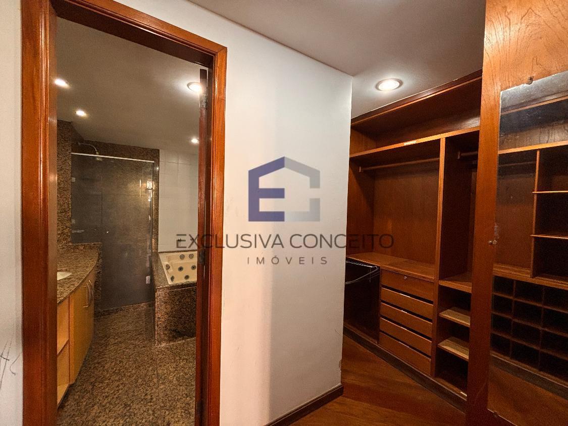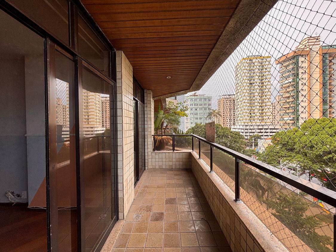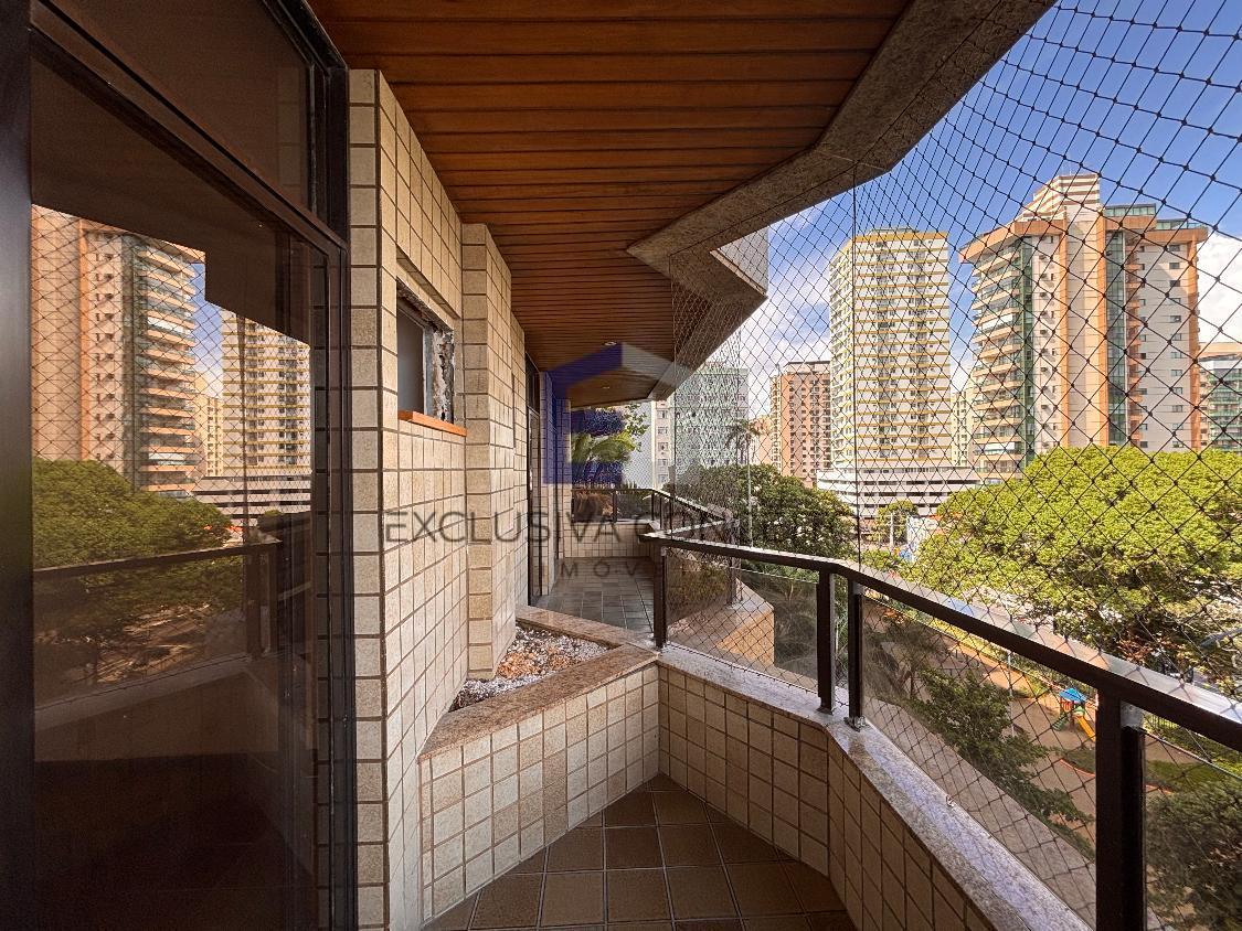 Apartamento com 04 quartos, sendo 02 suítes com closet e varanda. Uma das suítes possui banheira de hidromassagem e um dos quartos possui varanda, assim como as suítes.