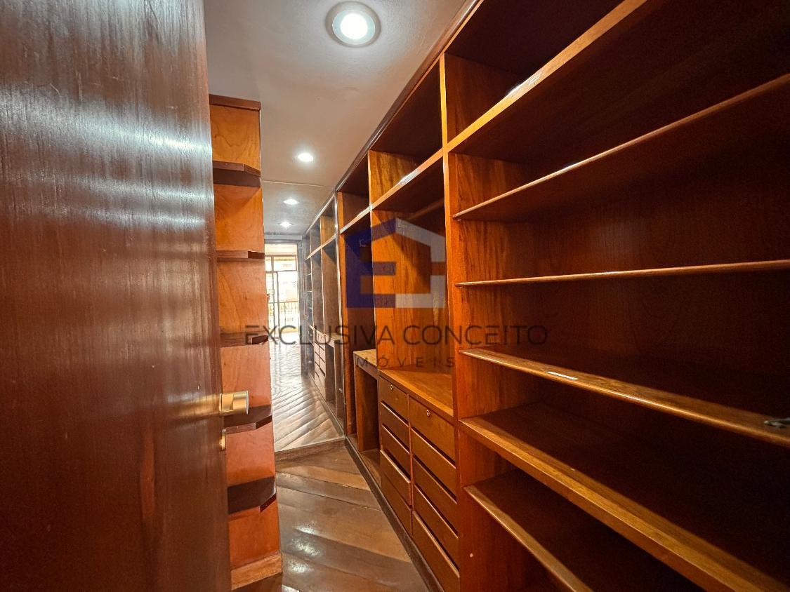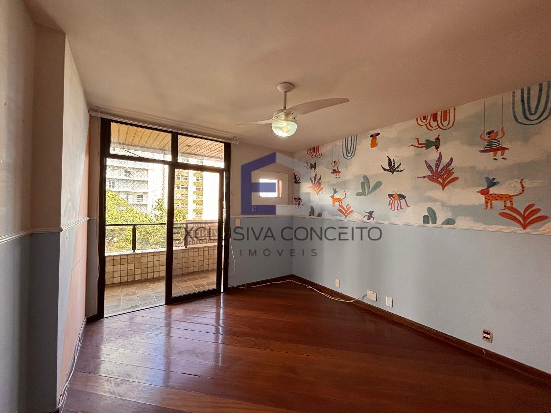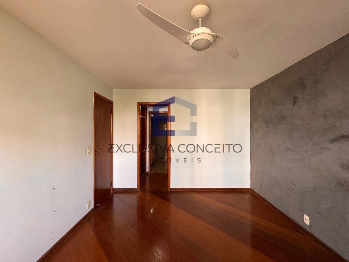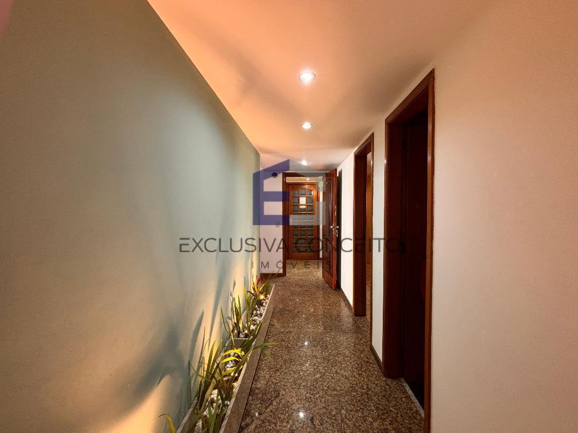 Apartamento com 04 quartos, sendo 02 suítes com closet e varanda. Uma das suítes possui banheira de hidromassagem e um dos quartos possui varanda, assim como as suítes.