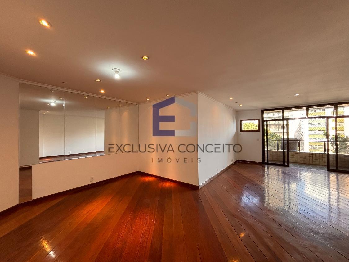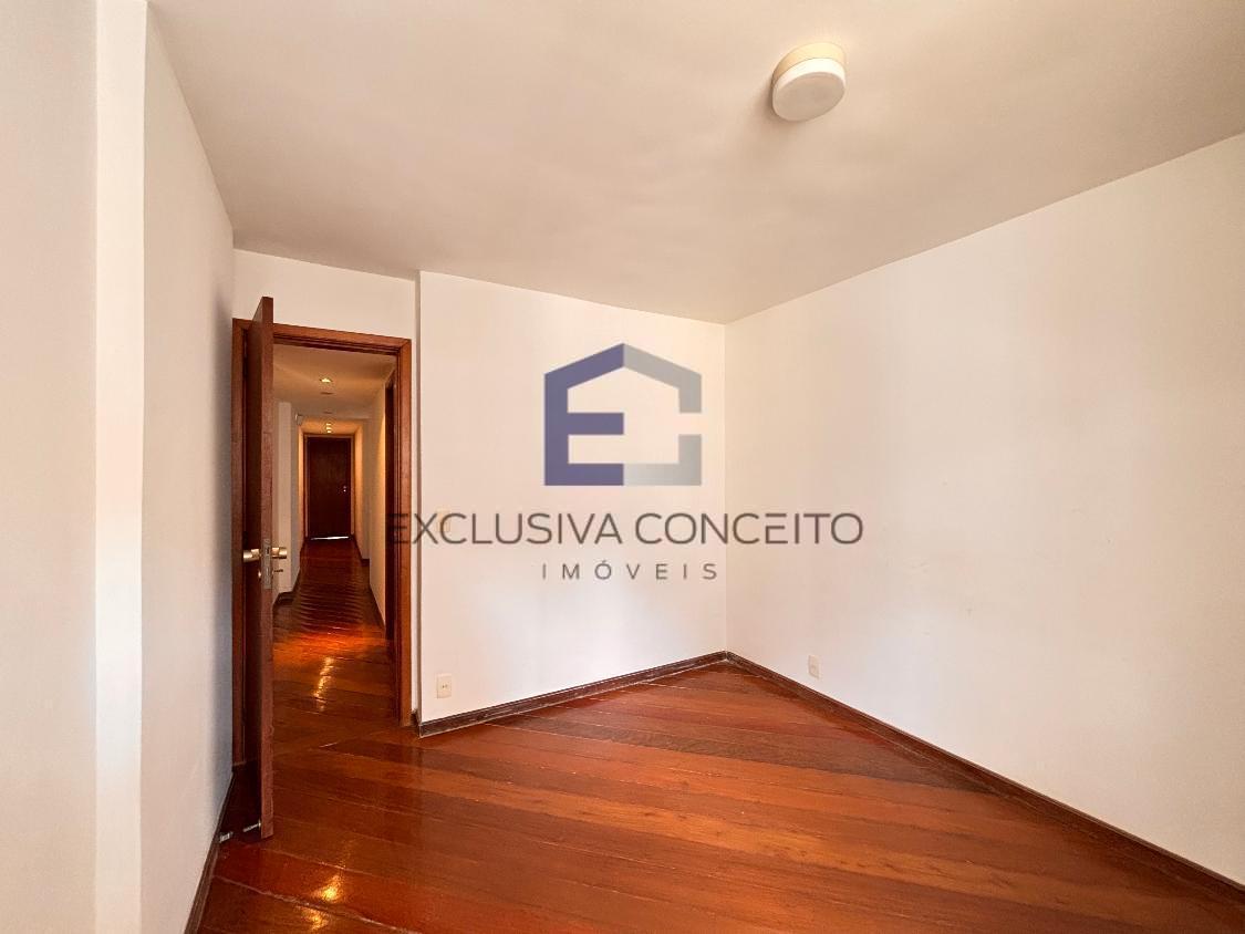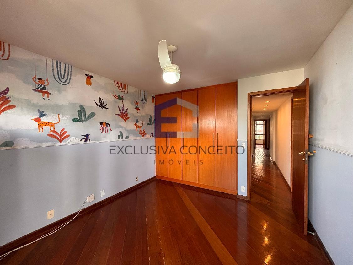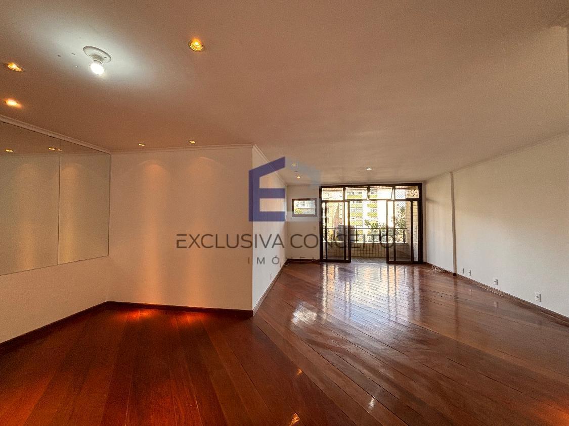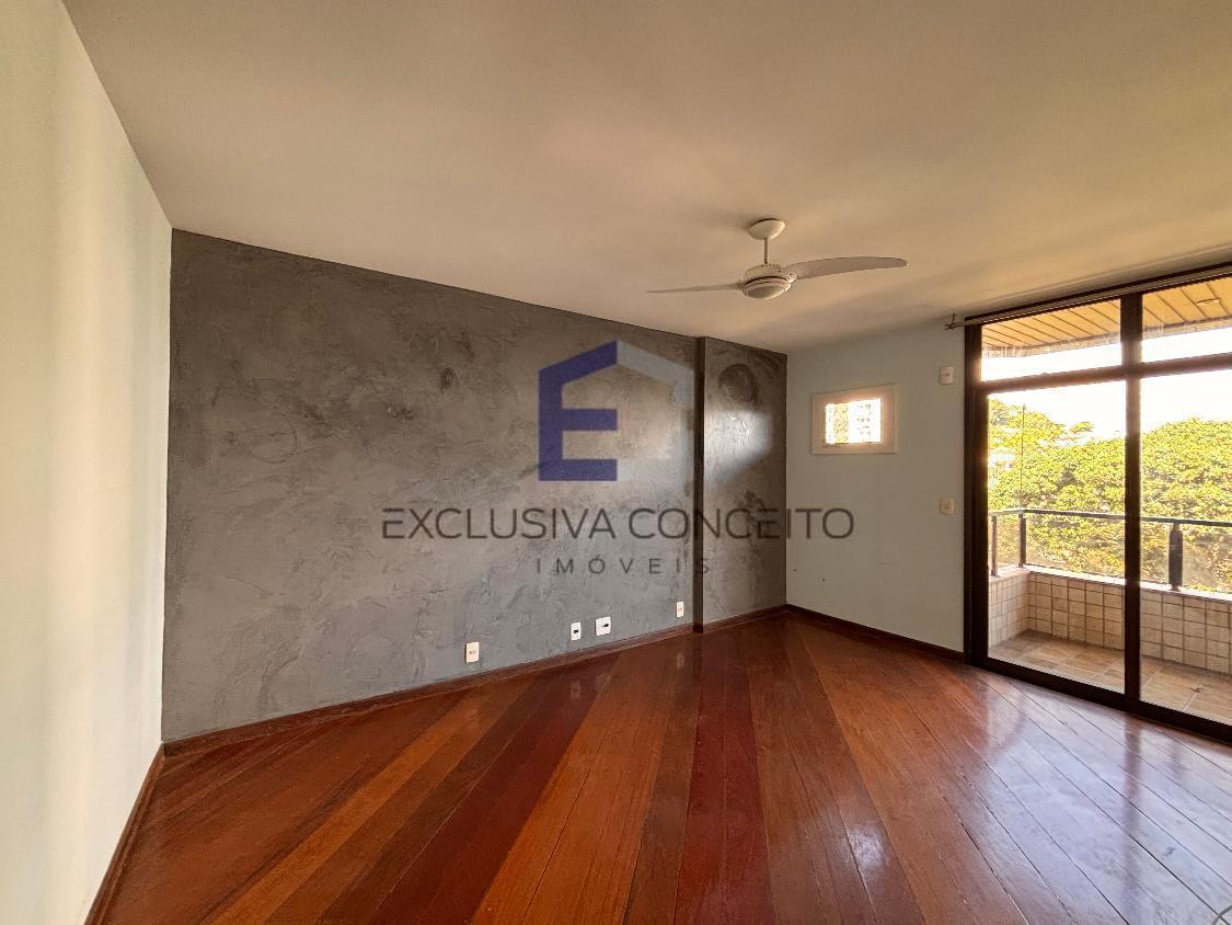 Apartamento com 04 quartos, sendo 02 suítes com closet e varanda. Uma das suítes possui banheira de hidromassagem e um dos quartos possui varanda, assim como as suítes.