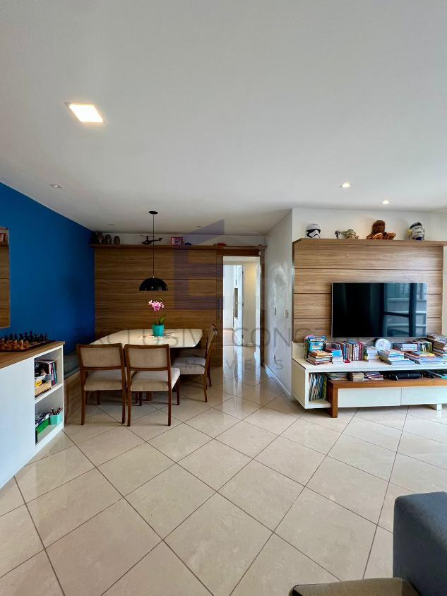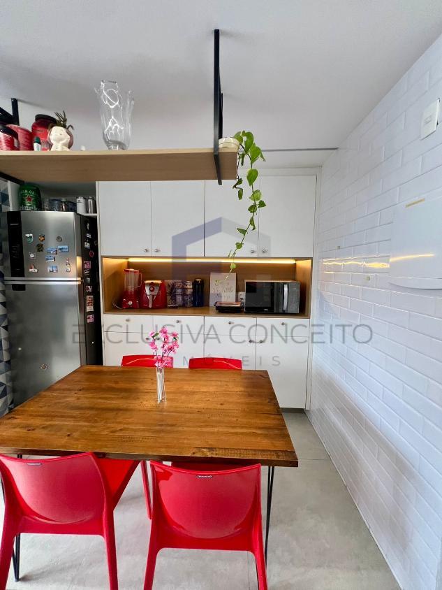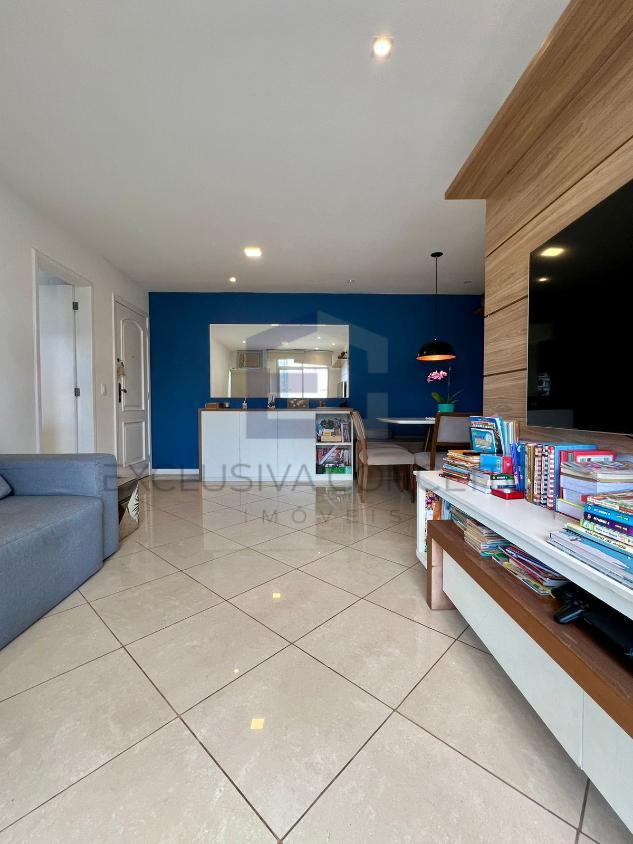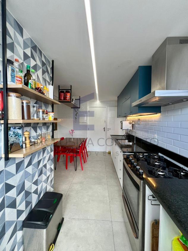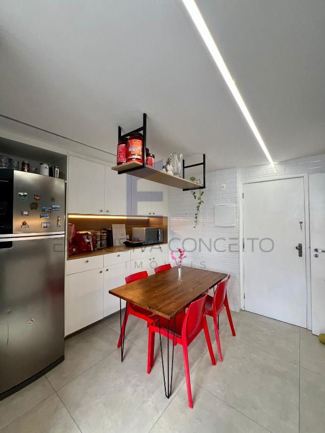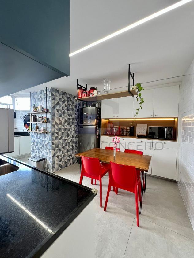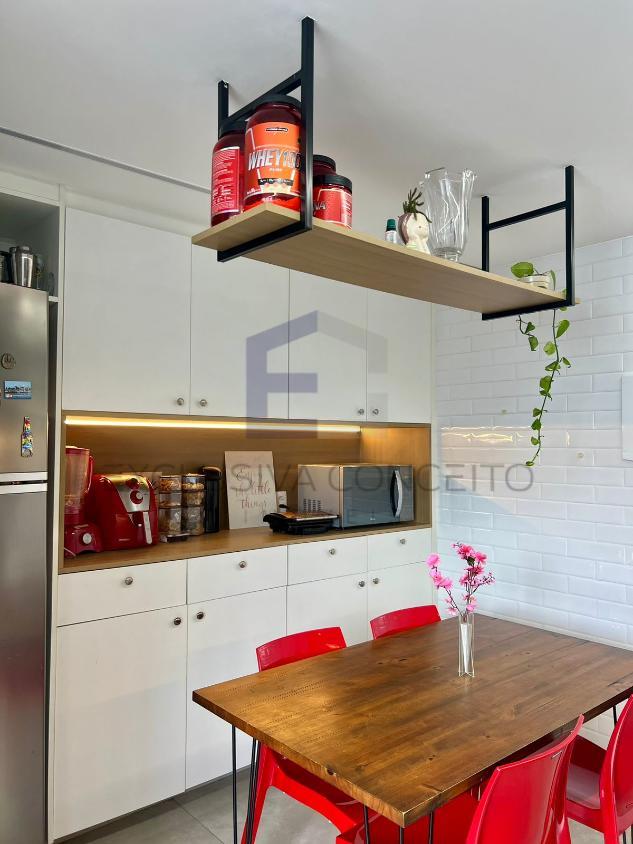 A sala é ampla, com dois ambientes bem definidos, ideal para quem aprecia boas experiências de convivência. A cozinha, moderna e funcional, é integrada de forma inteligente à área de serviço independente.