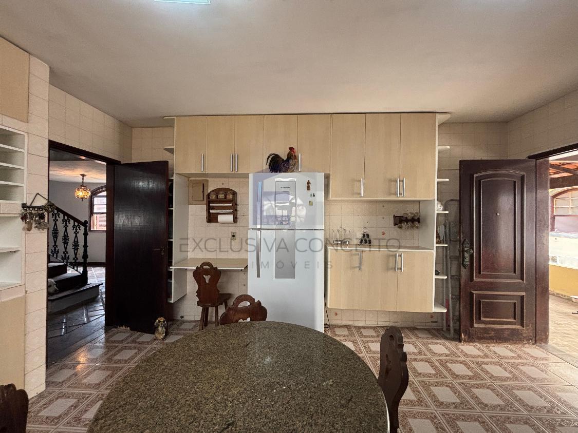 A casa principal acolhe com varanda frontal, sala em 03 ambientes, lavabo e cozinha grande familial com despensa que termina em uma varanda na parte posterior da casa.