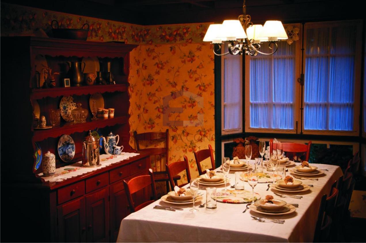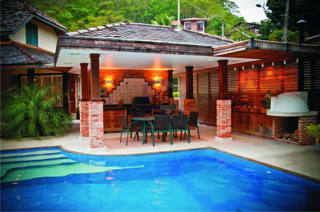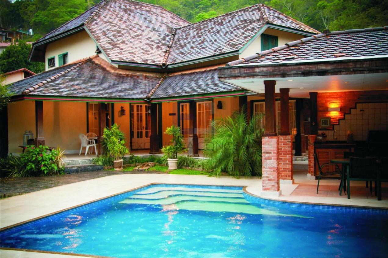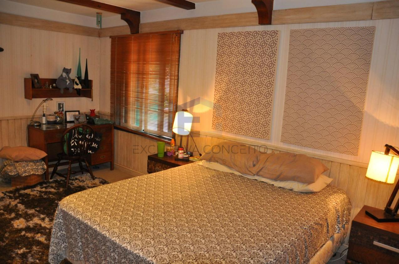 No 1º pavimento, encontra-se um salão dividido em dois ótimos ambientes, sala de jantar, lareira, lavabo, varanda, quarto com possibilidade de transformar em suite, banheiro social, copa-cozinha, 2 despensas, área de serviço, escritório, piscina, churrasqueira, cozinha gourmet, forno a lenha, sauna, jardim, garagem para até 6 carros e depósito.