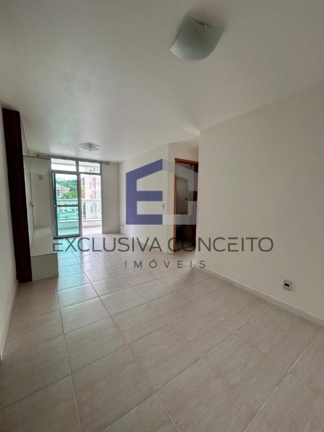 Sala espaçosa e arejada, com ampla varanda, vista livre e sol da manhã!