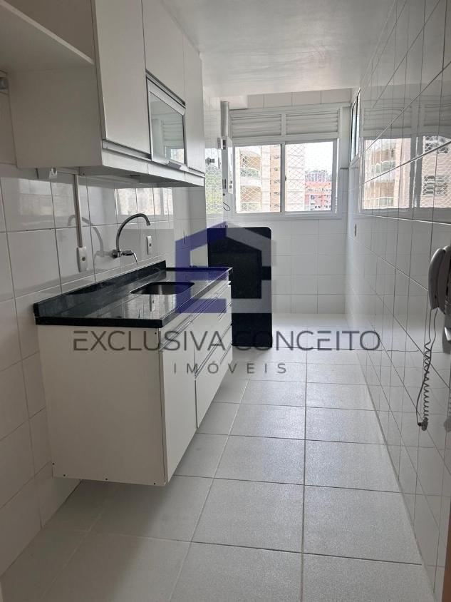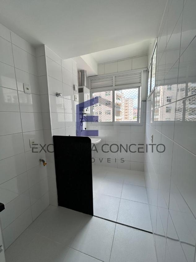 São 2 quartos, sendo 1 suíte, banheiro social, lavabo, cozinha com armários e área de serviço.
