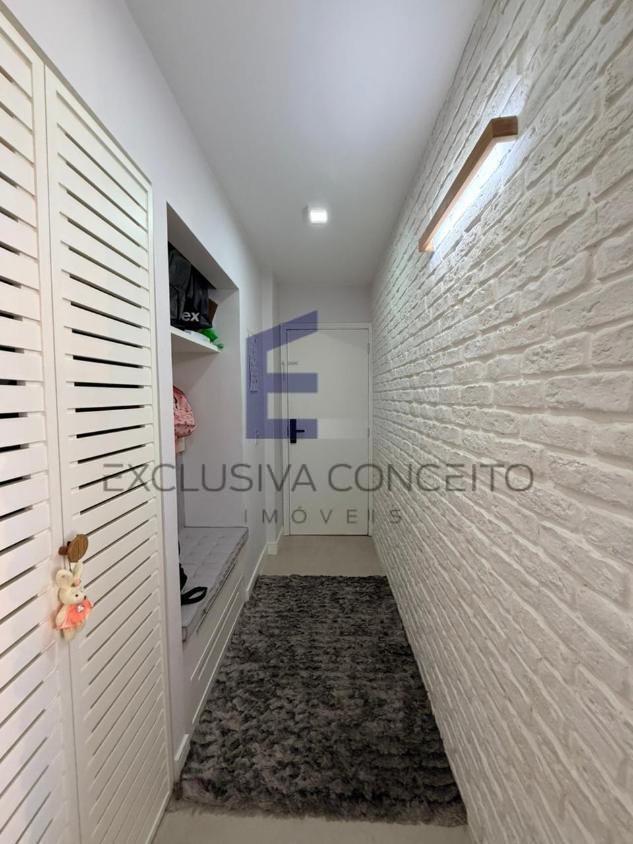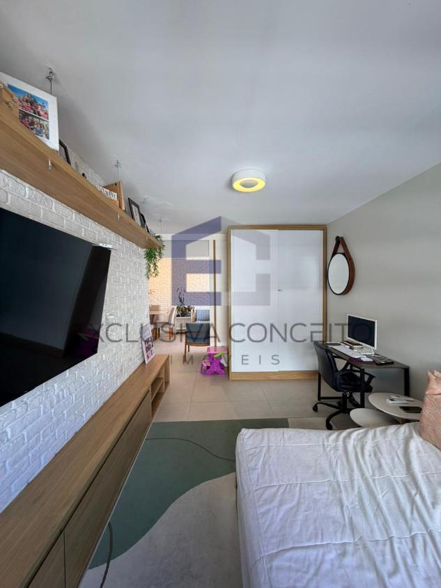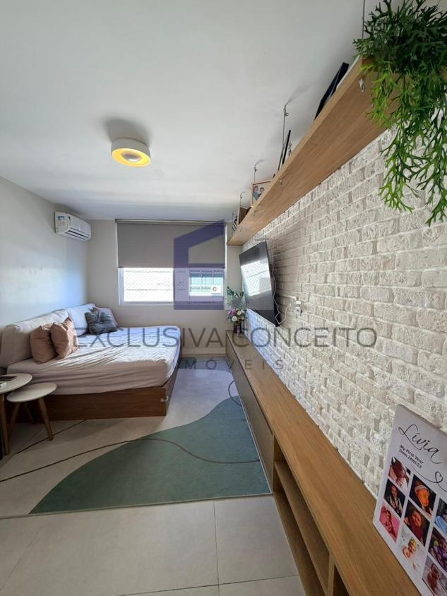 São aproximadamente 130m2 em 3 quartos, sendo 1 suíte, além de uma sala integrada à cozinha com um projeto moderno, com marcenaria planejada que valoriza cada detalhe do espaço. Entrada social com hall e sapateira e entrada de serviço com banheiro de serviço.