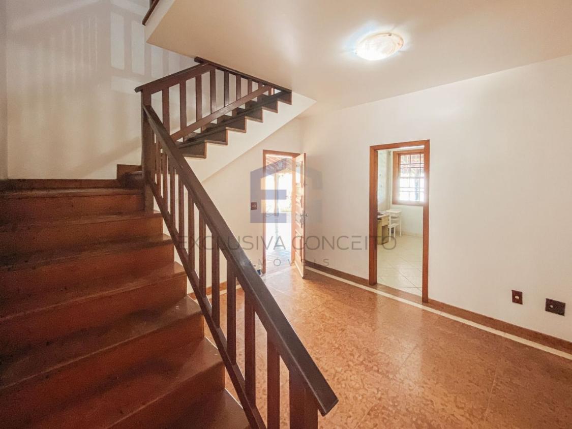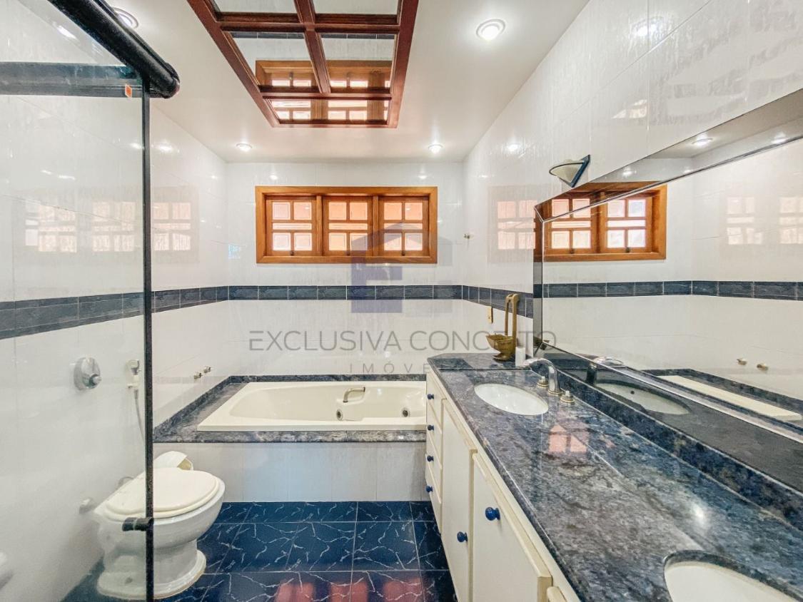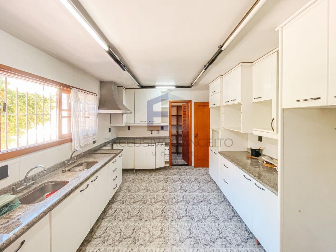 A casa possui cinco quartos, sendo quatro suítes com closet e varanda, sendo duas suítes modelo canadense com hidro e suíte principal com dois closets, mezanino com alto pé direito, sala em três ambientes, escritório (quarto reversível), lavabo, cozinha ampla e arejada com despensa, lavanderia grande, quarto de costura, dependência completa de empregada.