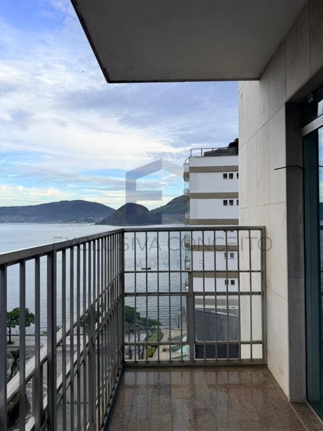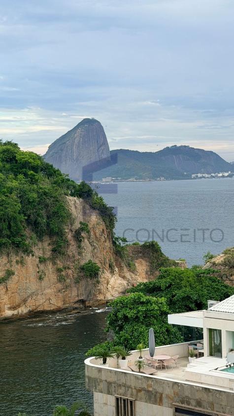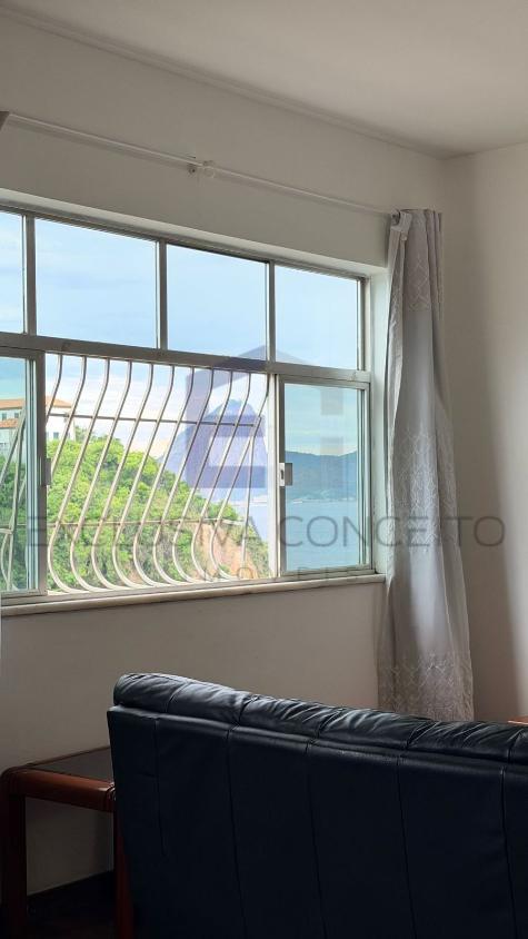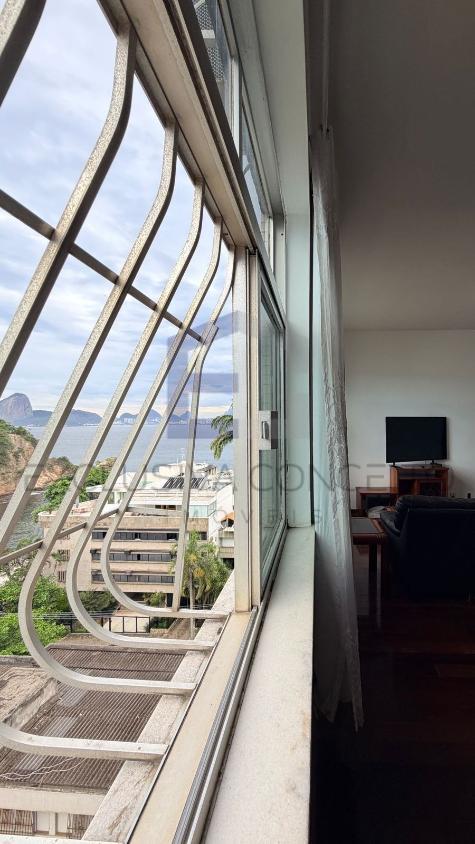 Apartamento em andar alto oferece vista livre para o Pão de Açúcar, Cristo Redentor e a Ilha da Boa Viagem.