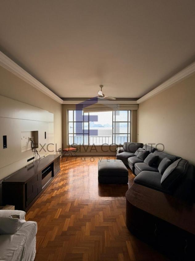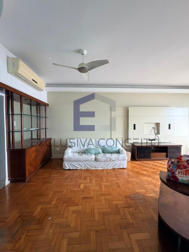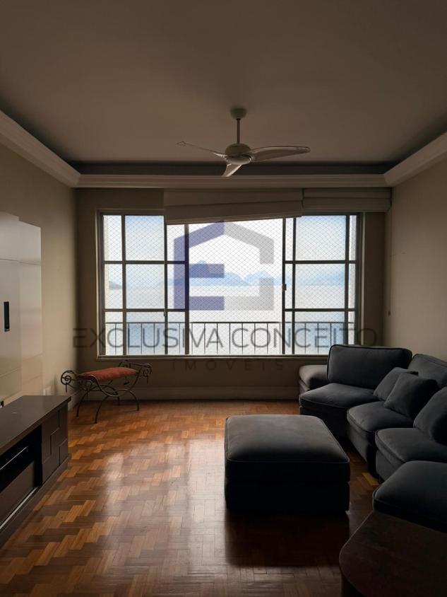 Apartamento frontal mar, em prédio 2 por andar, com 2 salas ( sala de estar e de jantar), banheiro social, cozinha com piso em granito, área de serviço e dependências. São 3 quartos, sendo um suíte (2 quartos frente mar). Uma vaga de garagem fixa, na na escritura. Ficam no imóvel: armários embutidos e aparelhos de ar condicionado. No melhor ponto da Praia, centralizado, em excelente andar. Prédio com portaria 24 horas, com modernização da parte de lazer. Obra em andamento para espaço gourmet, espaço grill, fitness e salão de festas.